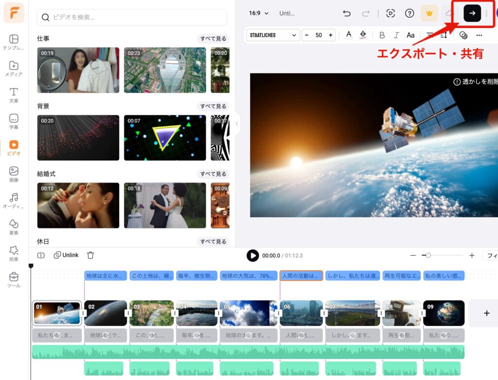FlexClipは直感的な操作がしやすく、動画制作や編集初心者の人でも簡単に使用できます。ここでは、動画作成手順を紹介します。
